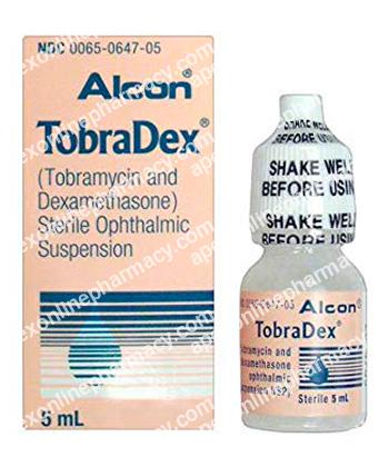 Tobramycin and dexamethasone is a combination ophthalmic medication used to treat eye infections with associated inflammation. Tobramycin is an antibiotic that kills susceptible bacteria, while dexamethasone is a corticosteroid that reduces swelling, redness, and irritation. This dual-action formula is commonly prescribed for bacterial conjunctivitis, keratitis, or post-operative eye care. It helps control infection while minimizing inflammation and discomfort.