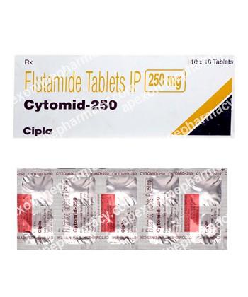 Eulexin prevents binding of dihydrotestosterone (androgen) with cell receptors and blocks effects of androgen in the target organs (including tumor cells of the prostate gland). This medication is used to treat a prostate cancer.